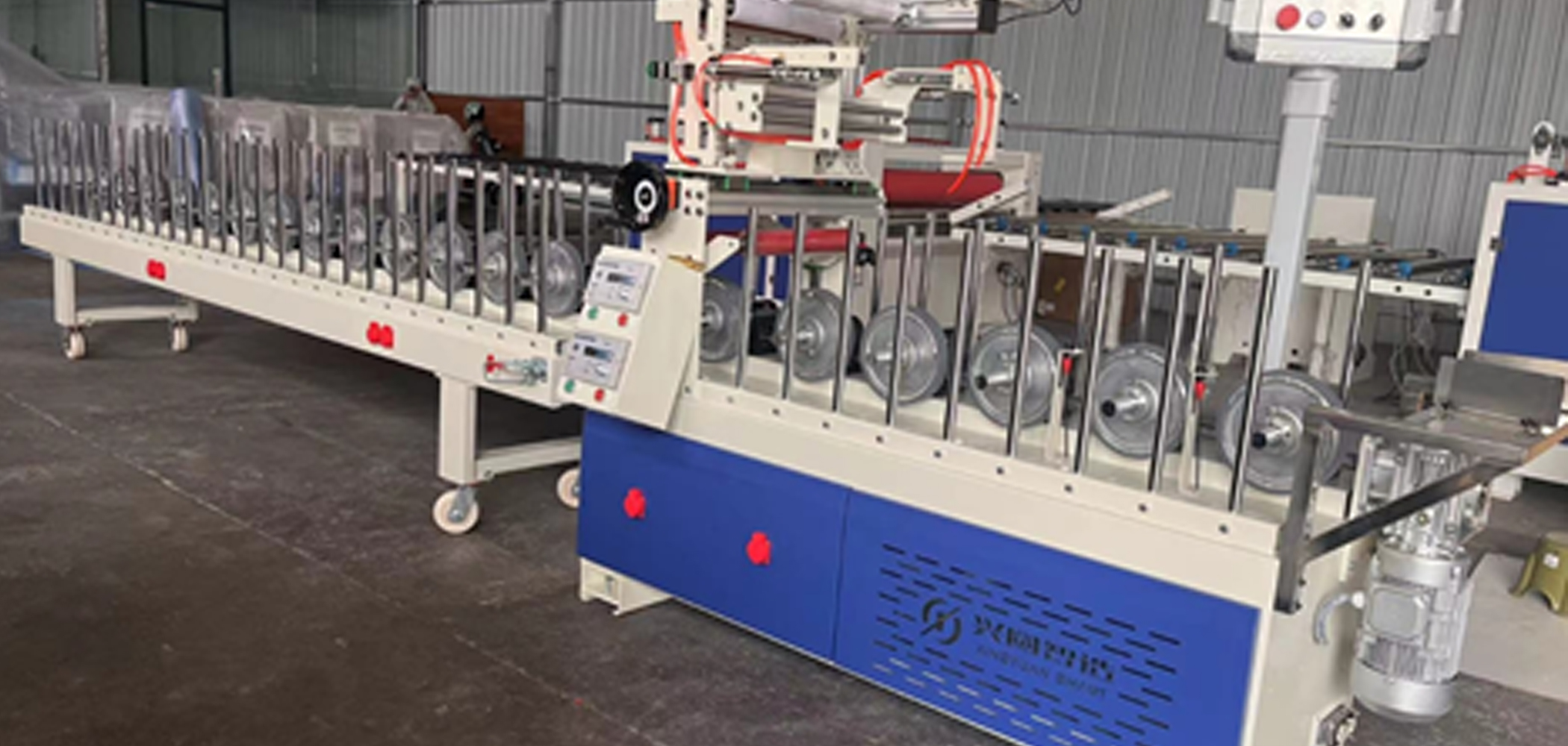 This 450 PUR glue profile wrapping machine adopts the latest international gluing technology, special coating PUR glue, can cover non-woven wood, PVC, CPL, decorative paper and other surfaces on wood lines, aluminum profiles, steel profiles and other concave and convex surfaces.