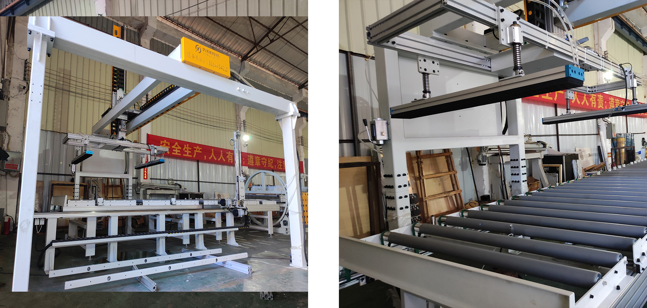 Automatic PUR glue lamination machine line, this machine is PUR flat paste production line, with auto loading, edge trimming, sanding, belt rush, oven, glue spreader and sheet table and roller press, auto cutting, edge trimming and panel turning and last the auto unloading. The whole line has a high degree of automation, suitable for large furniture, cabinets,wardrobes, wall panels and other factories.