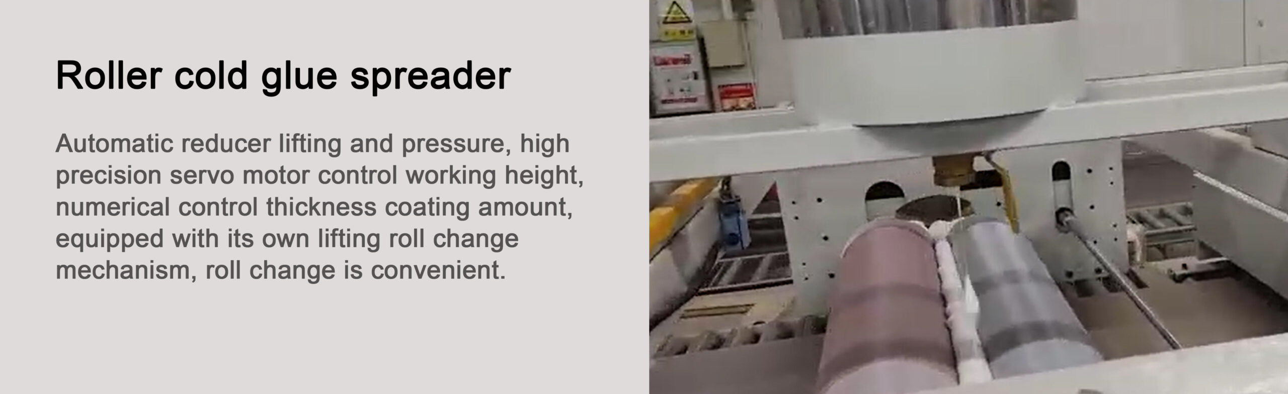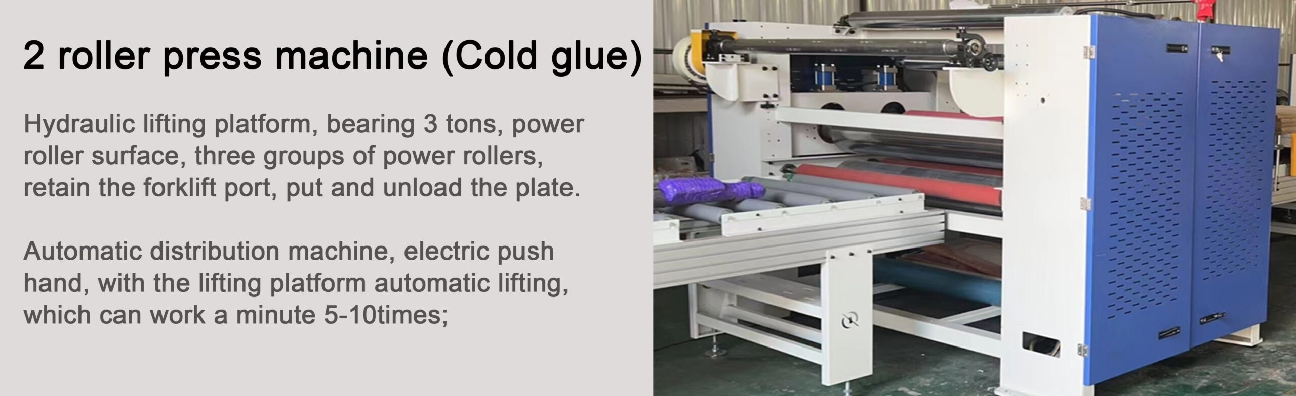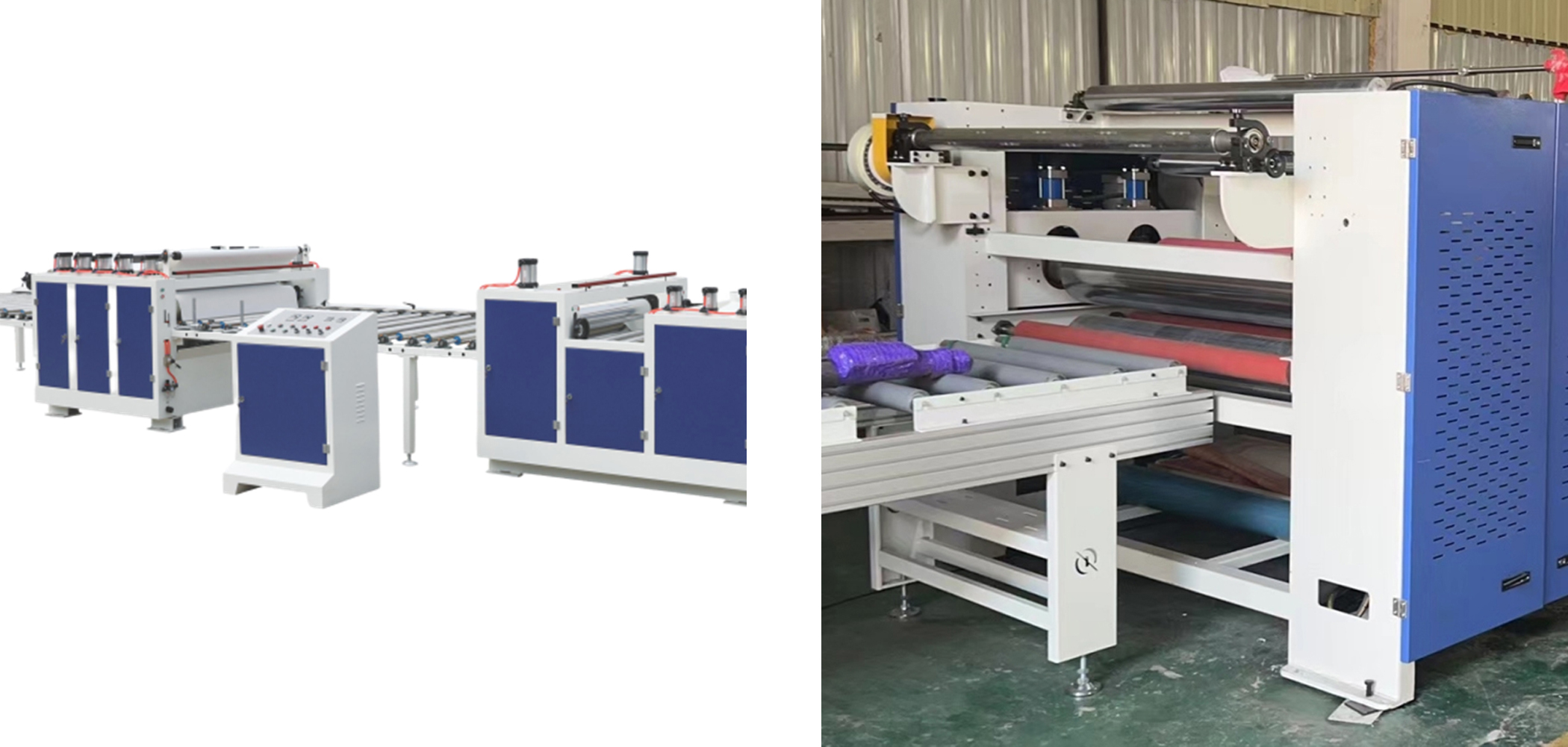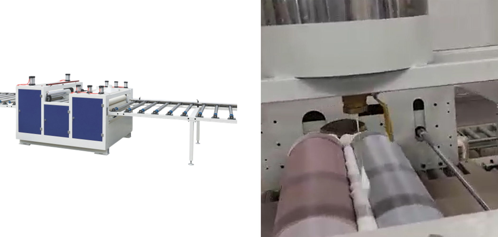 Paper lamination machine line (single side, pneumatic) is a water glue production line, used for PVAc glue no-paint PU paper,PVC film, production line with dust removal, glue, roller stickers, conveyor The whole line is suitable for furniture, cabinets, wardrobes factory sticker processing, can be customized according to the guest site of different lengths.